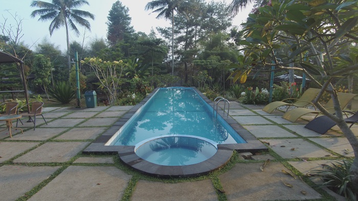 Di bagian tengah resort ini, ada area swimming pool. Terdapat juga beberapa gazebo atau bale-bale untuk sekadar santai ataupun makan bersama.