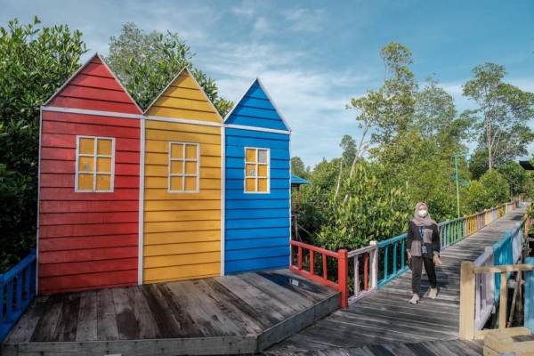 Wisatawan pun dapat menikmati pemandangan dari menara pandang dan berjalan menyusuri kawasan hutan mangrove dengan jembatan warna-warni. Wisatawan yang ingin mengabadikan momen, juga dapat berswafoto karena banyak spot-spot yang instagramable.